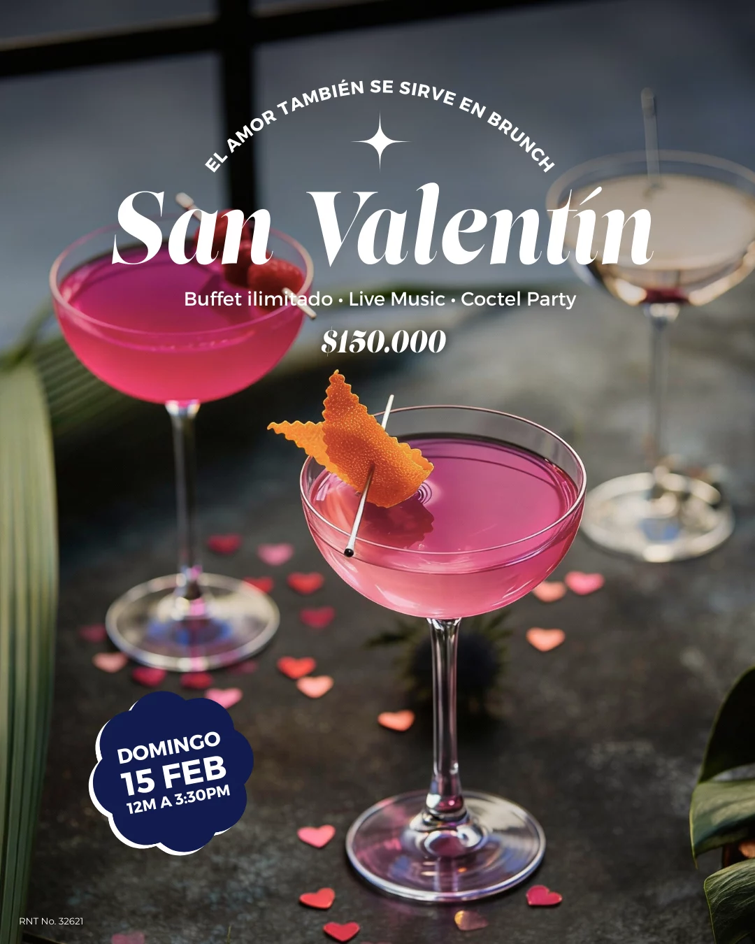 Brunch de San Valentín en Cali con buffet ilimitado, bebidas incluidas, menú especial y música en vivo. El plan perfecto para celebrar un día lleno de amor con tu persona favorita.
